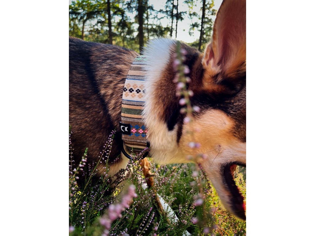 Stylový boho obojek v přírodních tónech, ručně zpracovaný pro dokonalý look při venčení.
